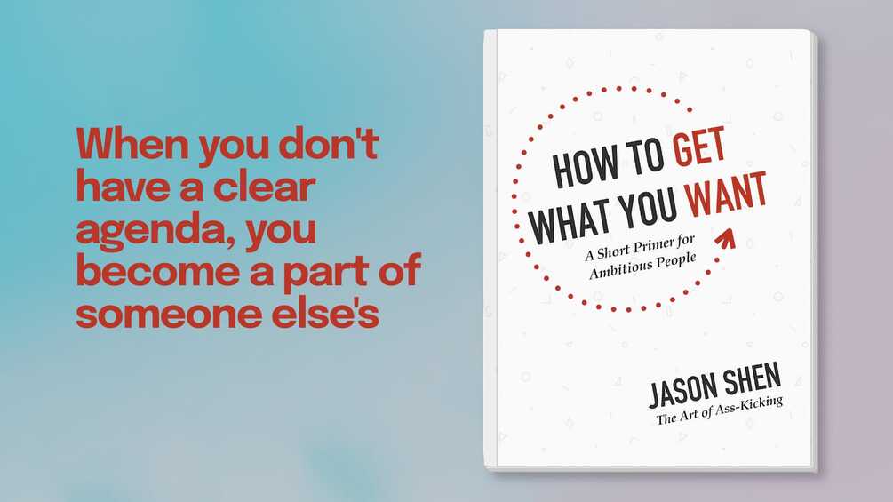 When we don’t have a clear understanding of what we truly want, and a game plan for how to get it, we turn into a pawn in someone else’s plans. It’s a battle: our agenda vs theirs. Weaving tactical advice, psychology research, and powerful stories into 36 no-fluff chapters, this book gives us the tools we need to figure out, and get after the things we really want.